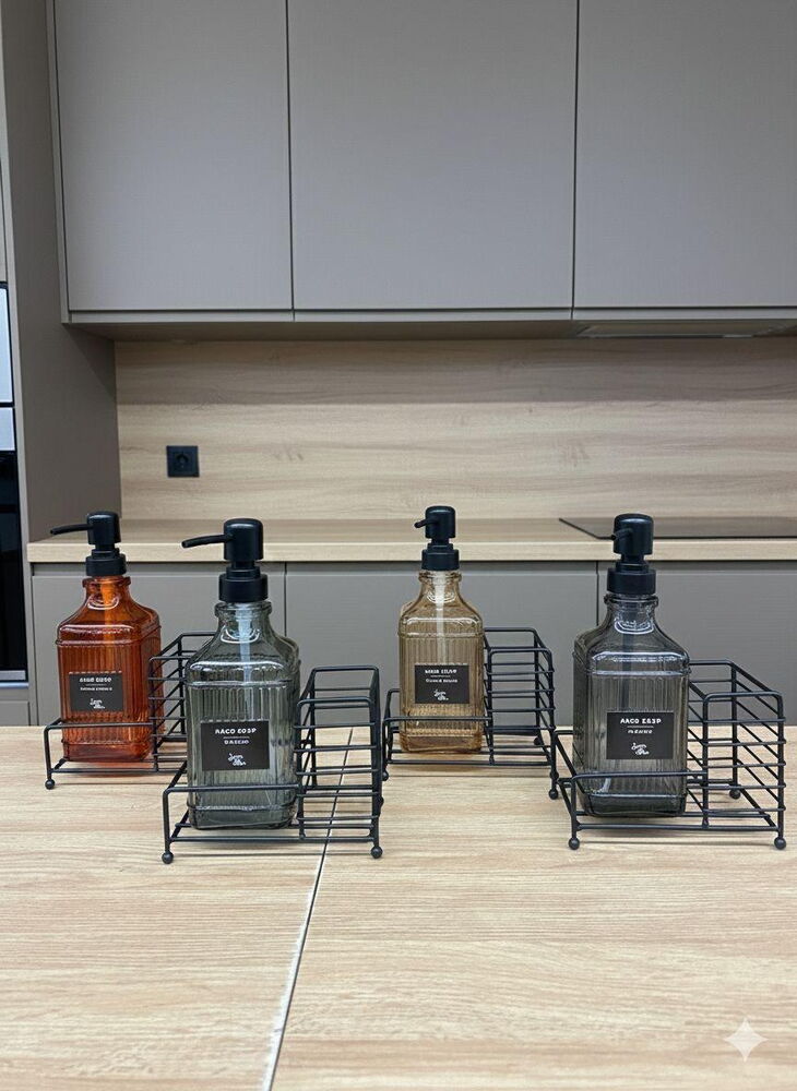 LUCA MİA SELİS STANDLI SİYAH RENKLİ CAM SIVI SABUNLUK
