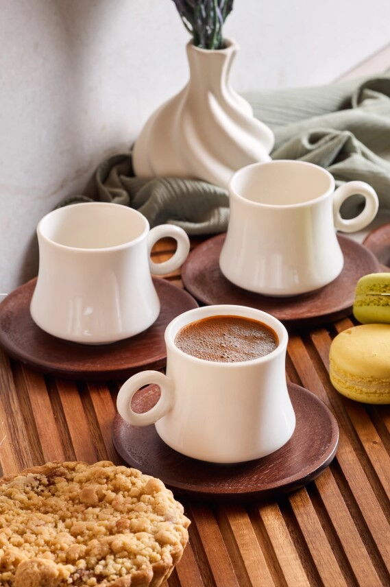 PEROTTİ 6'LI AKASYA TABAKLI DARK KAHVE FİNCAN TAKIMI