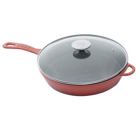 SÜREL YUVARLAK CAM KAPAKLI DÜZ TAVA SATEN BORDO 28cm
